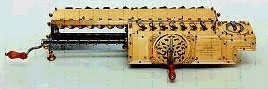 | Im Jahre 1672 erfand er seine Rechenmaschine, die eine Verbesserung von Pascals Addiermaschine darstellen sollte, und auch durch diese Maschine angeregt wurde. Seine Rechenmaschine konnte multiplizieren, dividieren und die Quadratwurzel ziehen. Auch er hatte große Probleme mit der |